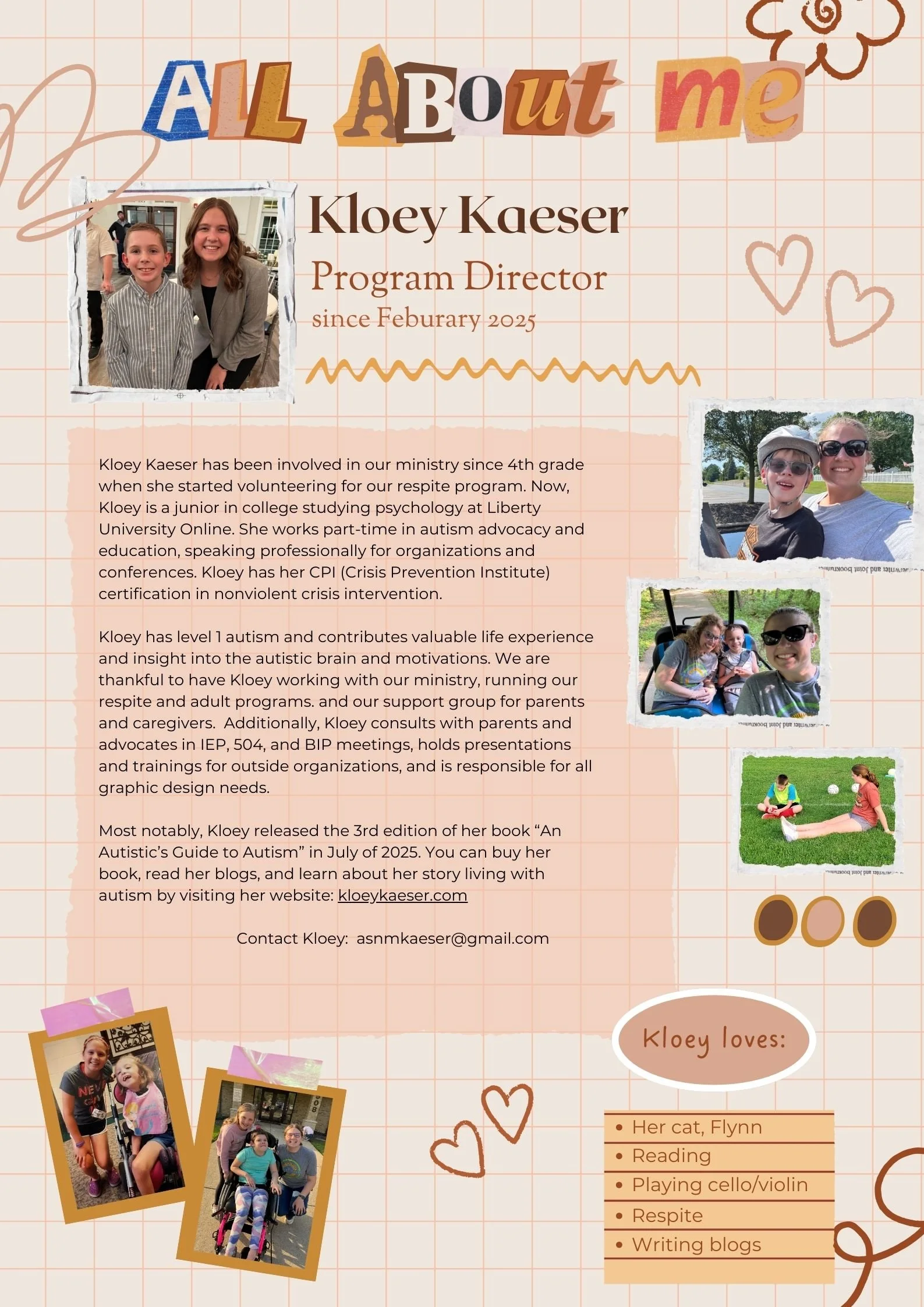 Kloey has Level 1 autism. She uses her experiences to teach others and advance education surrounding Autism Spectrum Disorder.