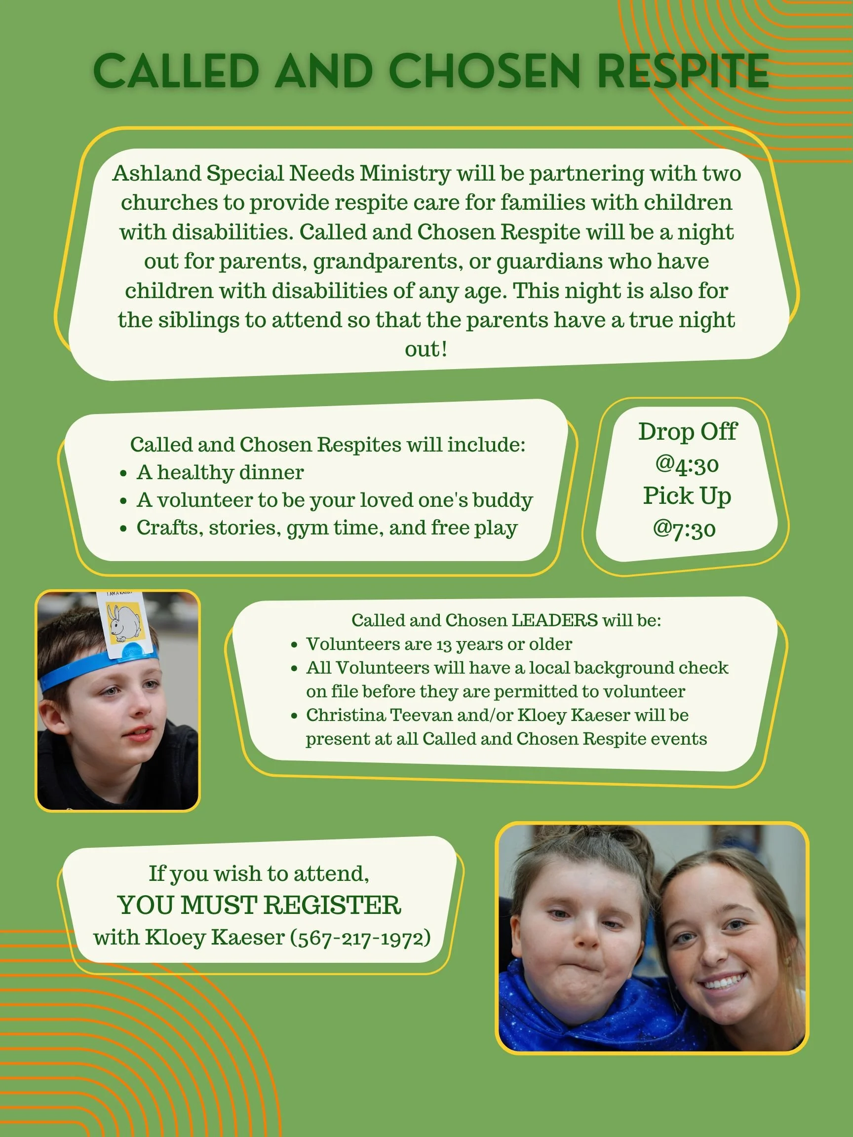Please email Program Director Kloey Kaeser with any questions about respite.